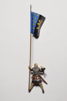 J'ai réalisé le chevalier n°14 français : Jean, sire de Créquy, portait un écu d'or, au créquier de gueules ; son cimier était deux têtes et cols de cygnes, affrontées d'argent, becquées de gueules, tenant ensemble un anneau d'or, à la pointe d'un diamant. Il était fils aîné de Baudouin, sire de Créquy, et d'Aelis, fille héritière de Matthieu, seigneur de Heilly.